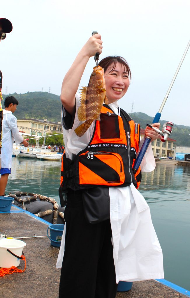 釣果は例年より良く、午前9時の釣り開始時から比較的大きなキジハタやガシラ、チヌなどが次々と釣り上がり、桟橋のあちこちで歓声が上がった。